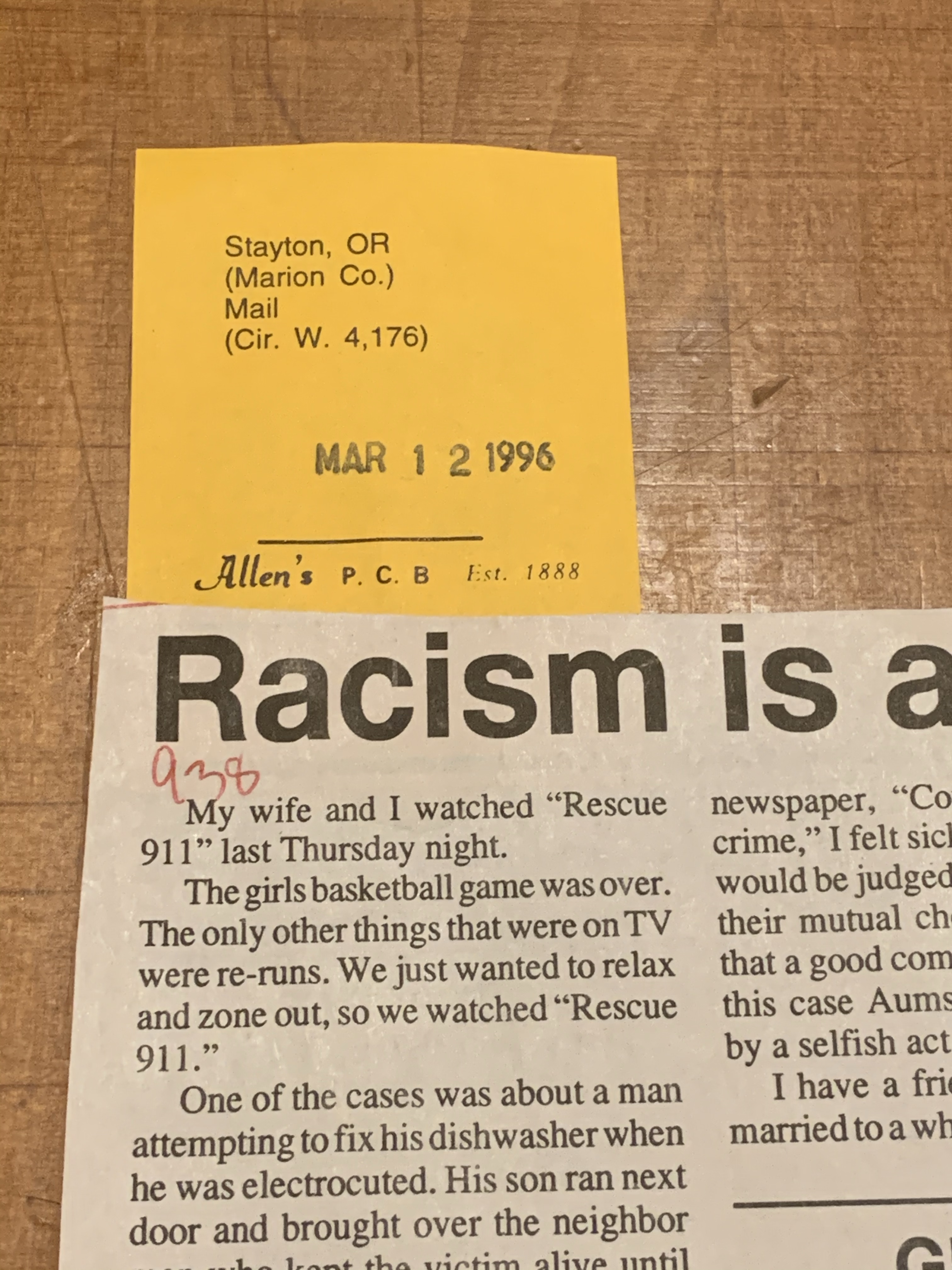 May 16, 1990–Alan Rausch’s “Police distorted incident at park; media added to it” a must read example of activist journalism from that era. Pulitzer Prize in letters to the editor should have been awarded here. Sly dig at journalists who “when in doubt call the sheriff ” and dead possums, from when Portland cops dropped them at a Black business, are devastating. We would get back at the cops only days later at Little Beirut II.
