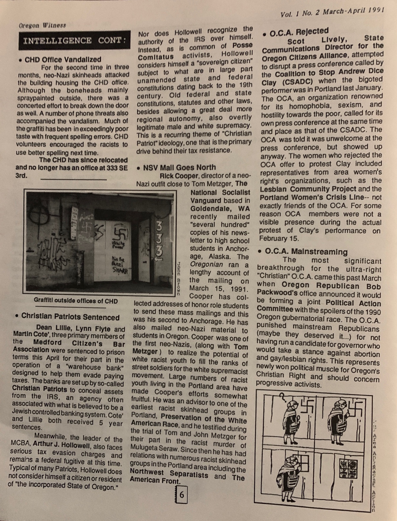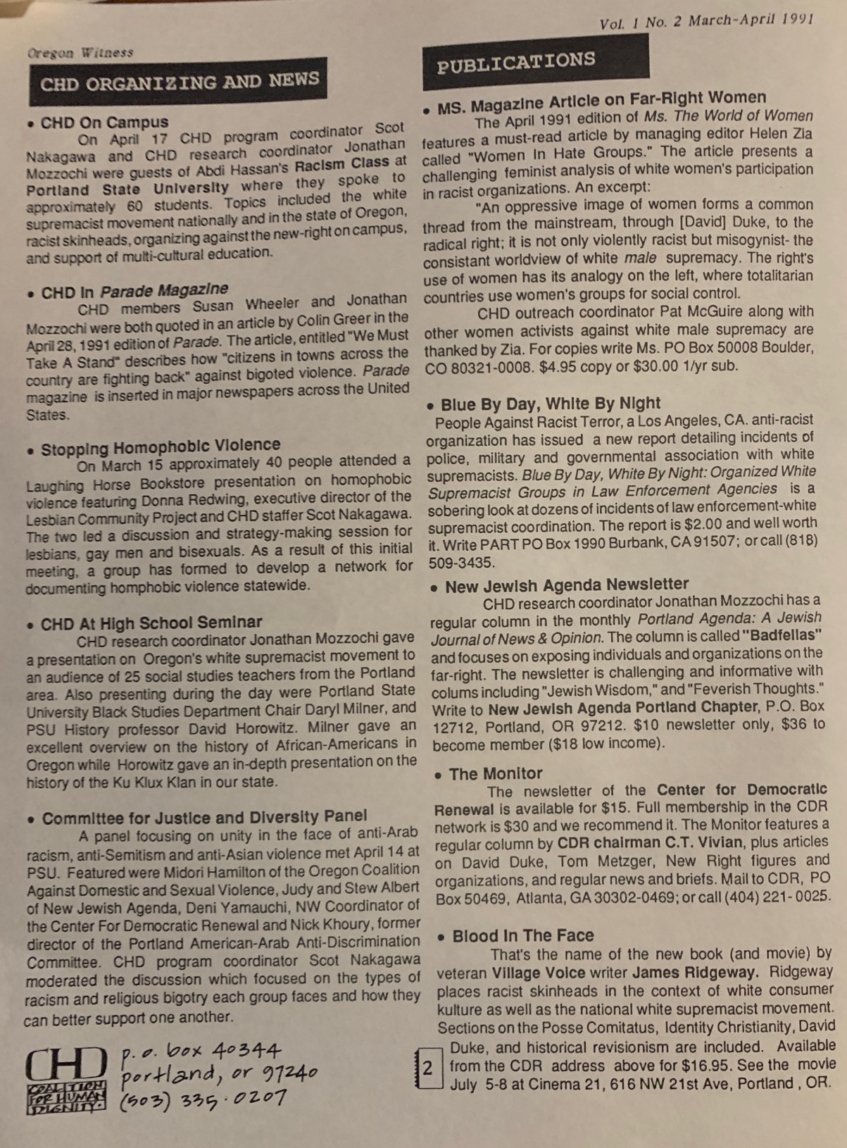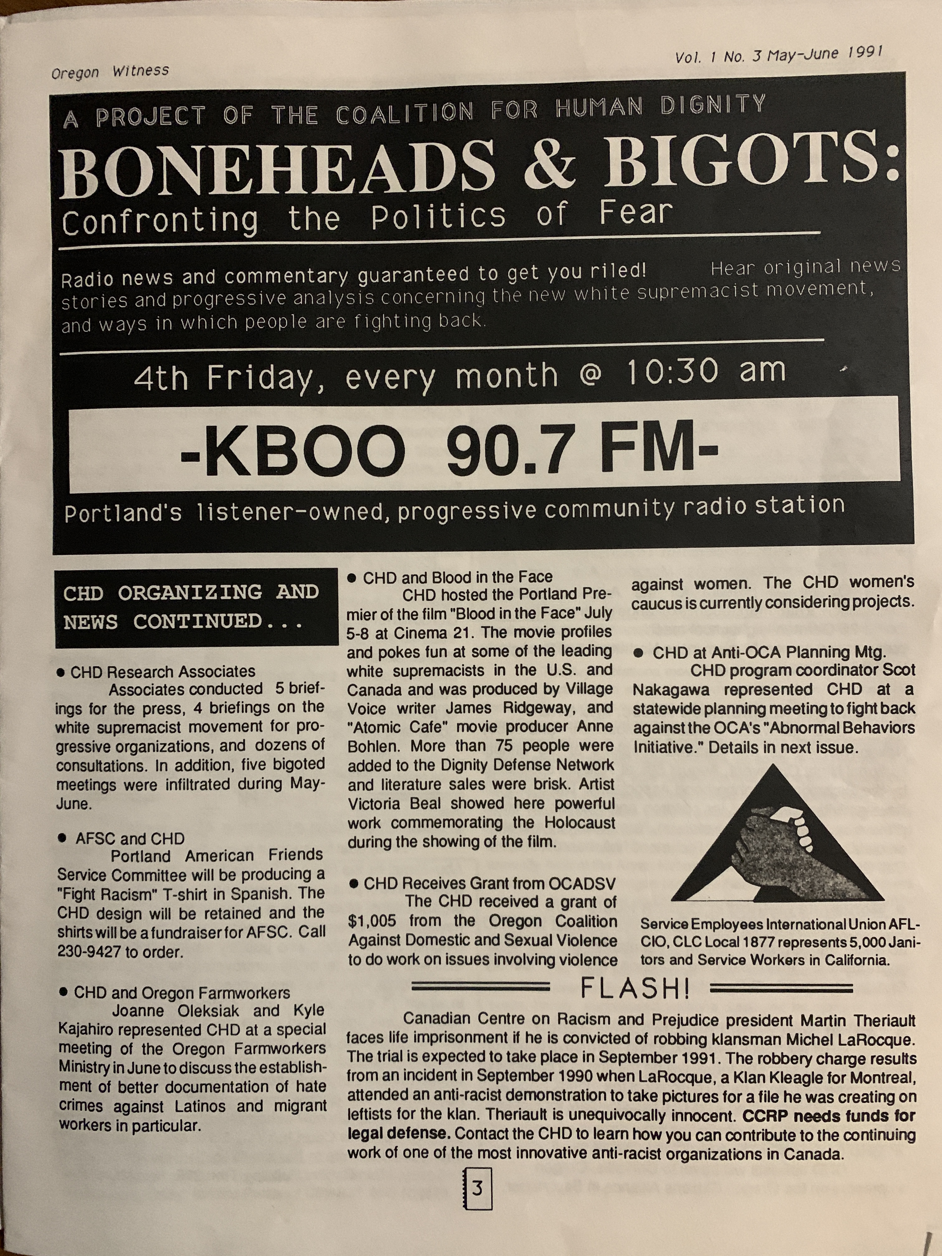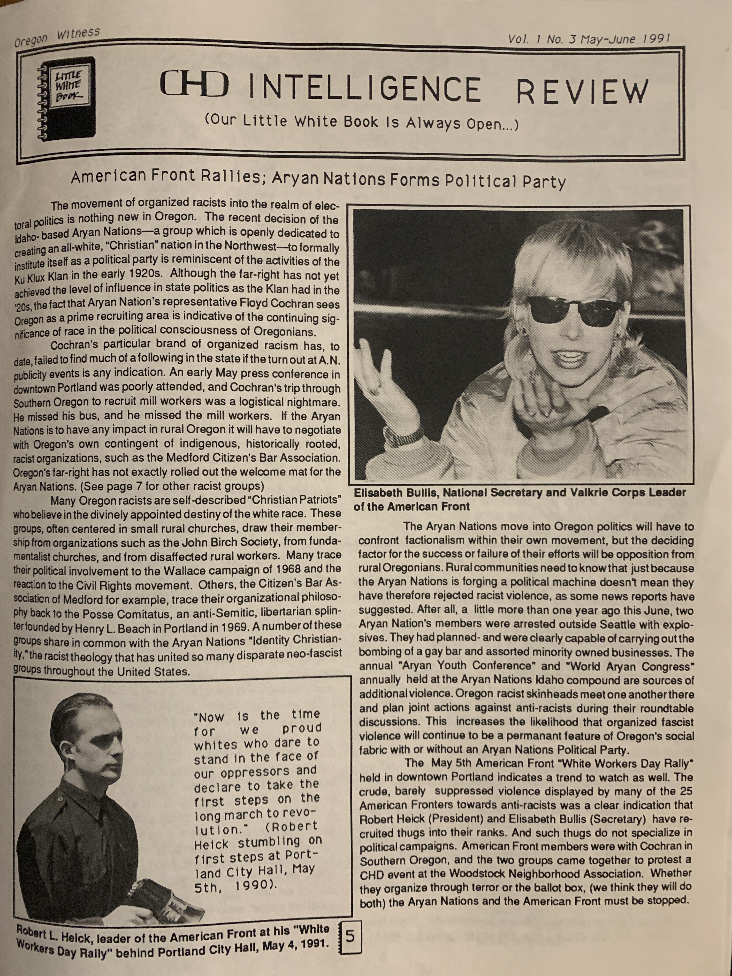 September, 1990–CHD releases “Organized White Supremacists in Oregon”