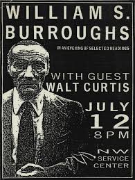 July 13, 1988–William S. Burroughs introduced by Walt Curtis at the Northwest Service Center. If you hung around cafes in Portland during the late 1980s Curtis was a fixture. I remember him holding court on NW 21st street — filthy, drunk, loud and totally mesmerizing. He stole the show with his indelible poem about lying naked under a tree in a field on a hot, summer day and the ensuing pleasure he received from a black lab. Again, I shit you not. Uproariously funny.