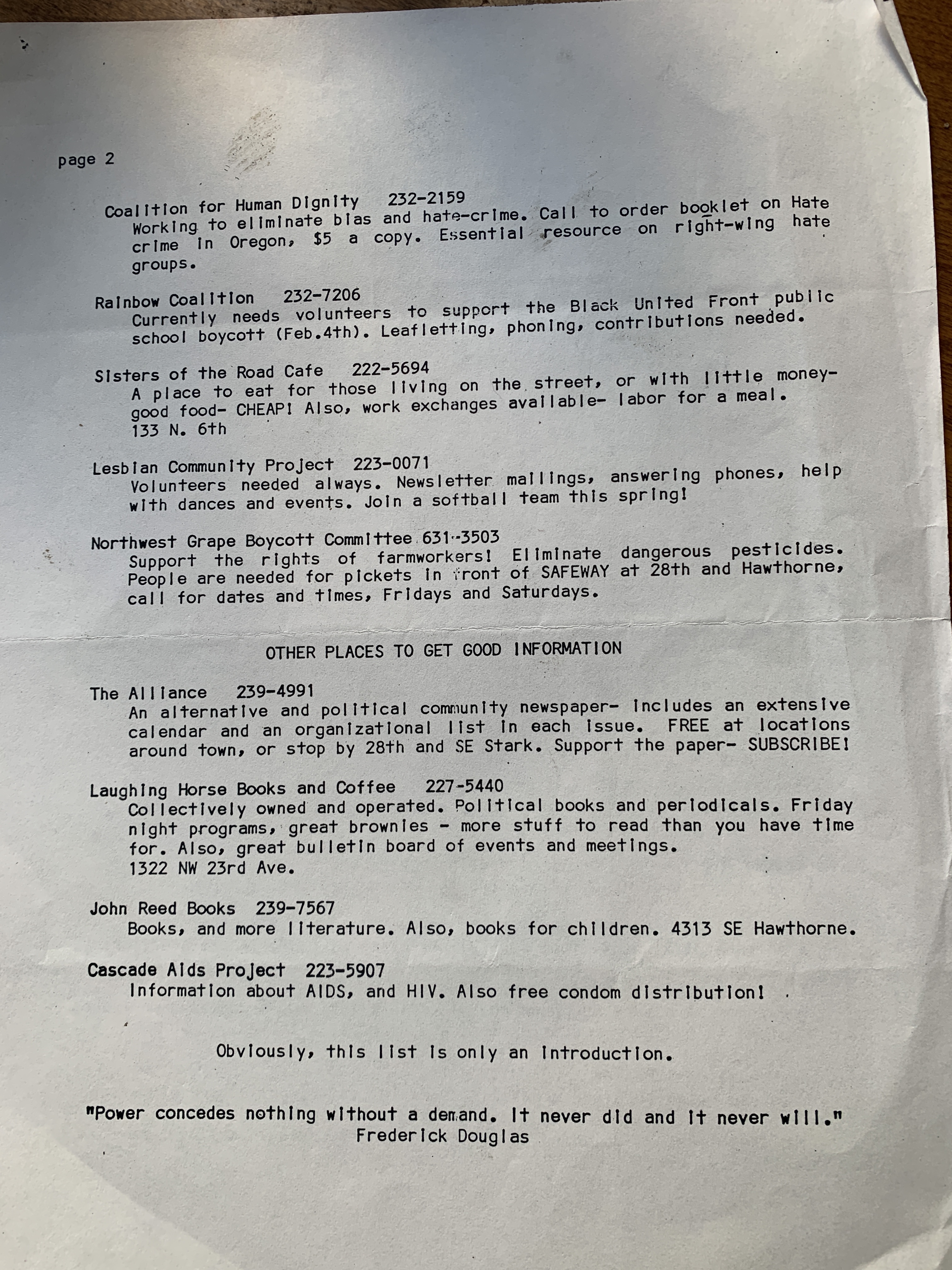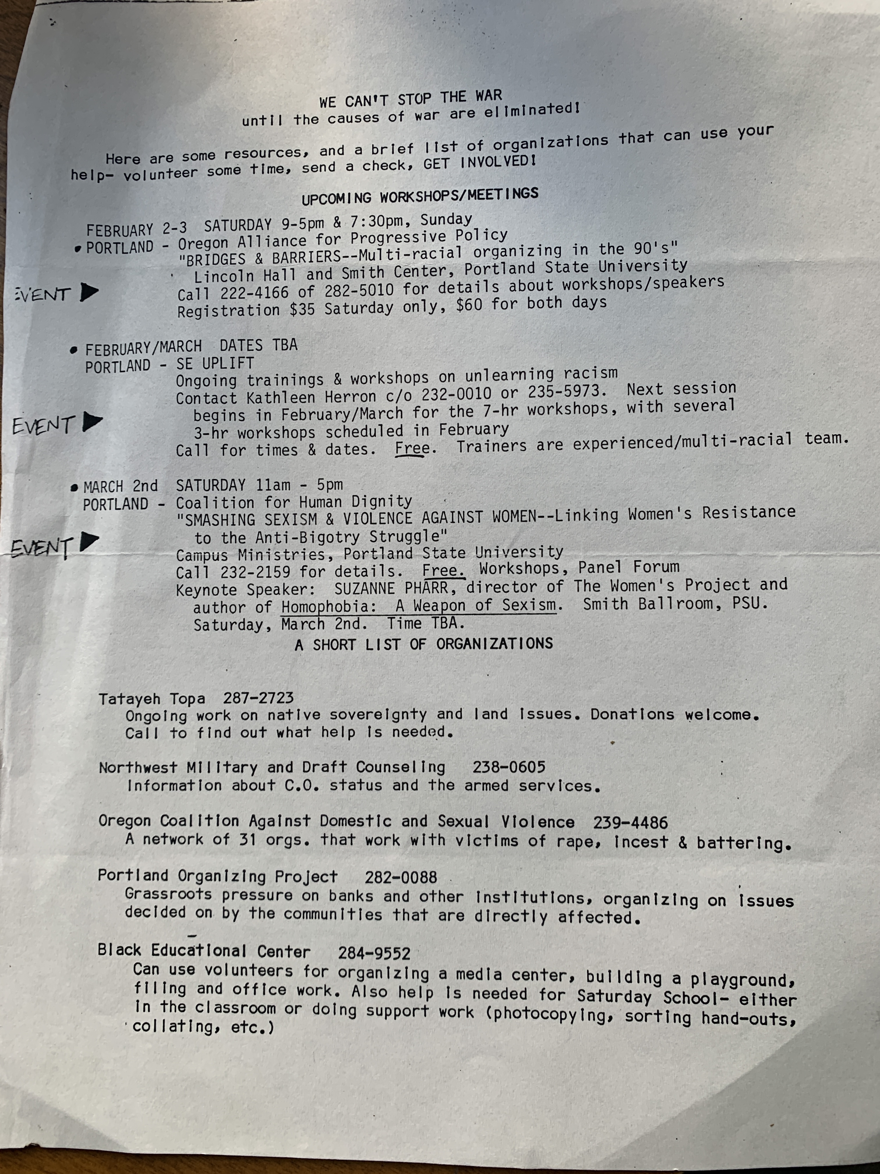 January 4, 1990–Partial Mass Direct Action discussion document circulated in Portland, Oregon.