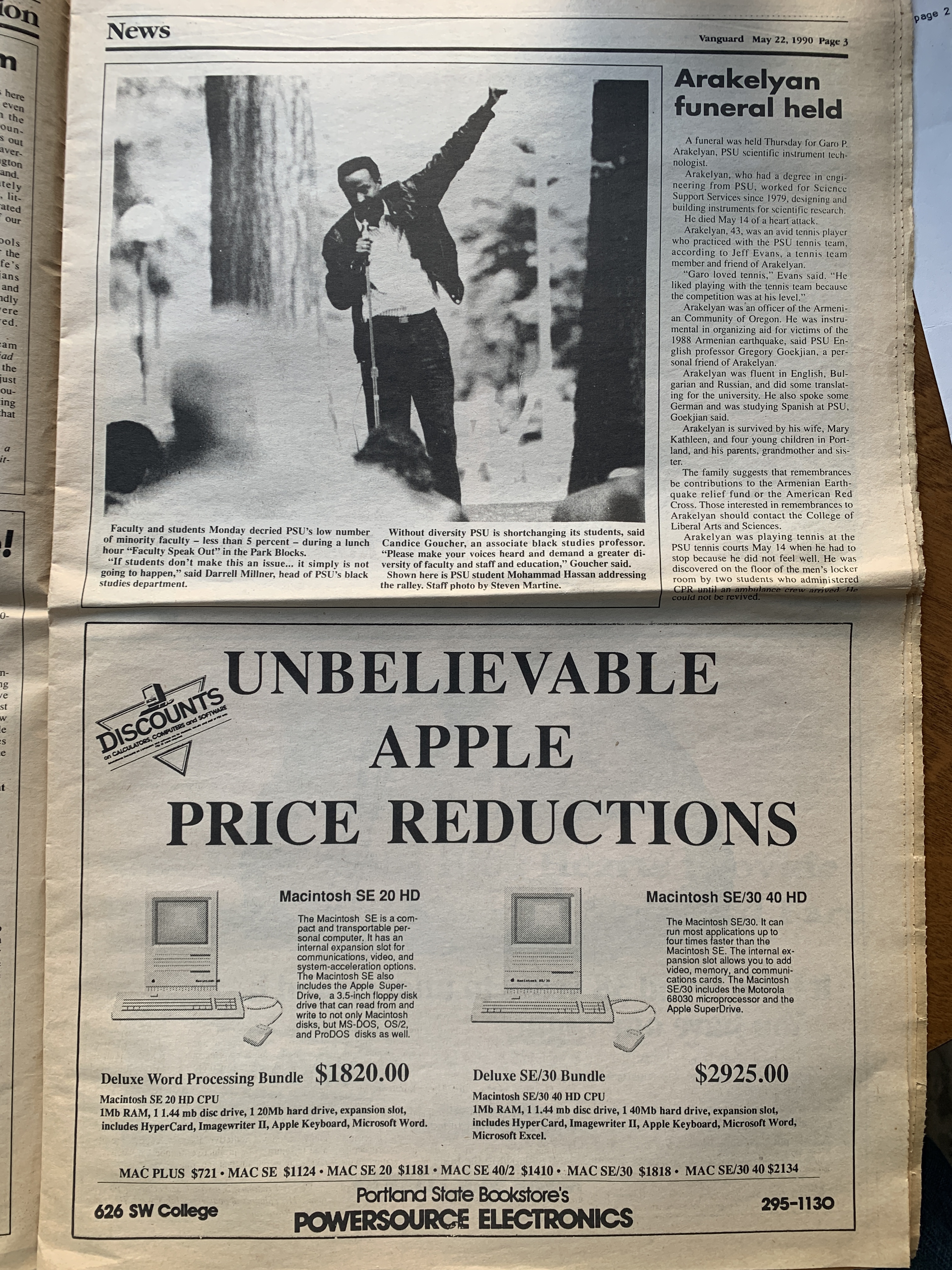 Mohammad Hassan (above) at PSU protesting less than five percent faculty of color at Portland State University. Check out those Apple prices!
